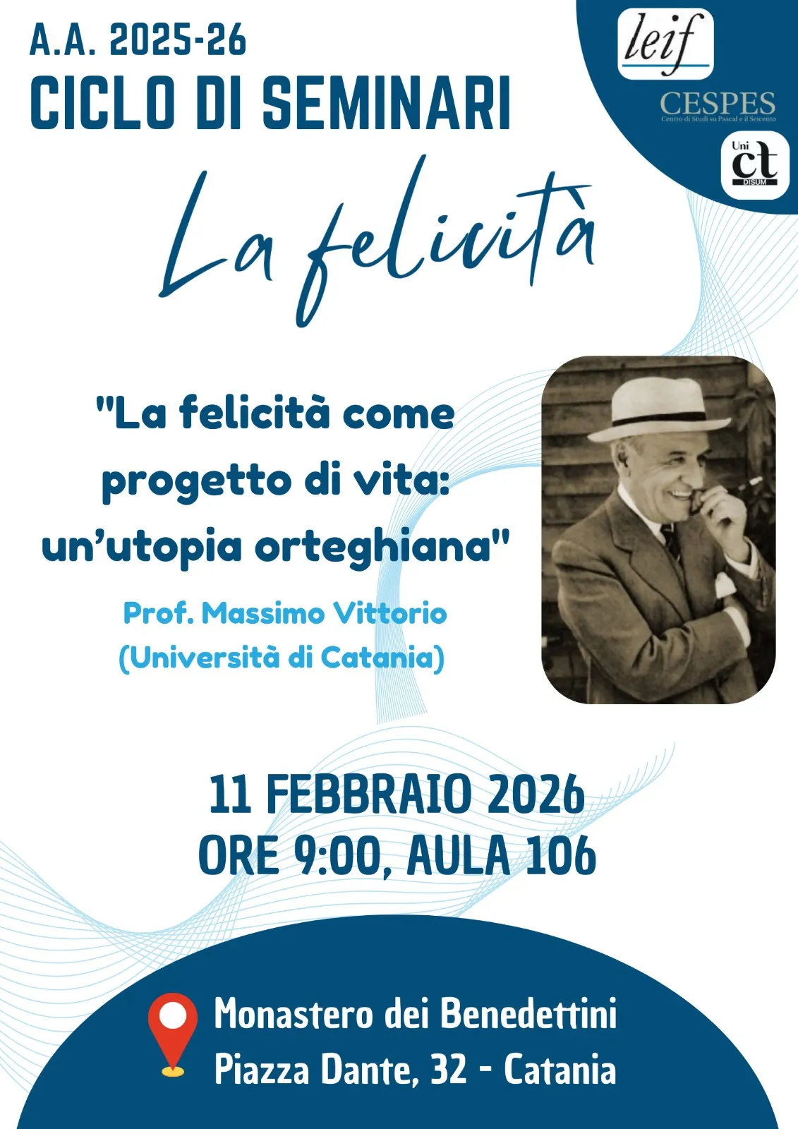 Etica-mente organizes an international conference to celebrate the Spanish philosopher Ortega y Gasset 70 years after his death (1955-2025). Date20 March 2026 VenueDept. of Humanities, University of Catania, Italy Conference ProgramInvited Key Speaker: Prof. I. Blanco Alfonso, Fundación Ortega-Marañón, MadridThe final program will be published in the next weeks. RegistrationProceed to register on Eventbrite at … Leggi tutto